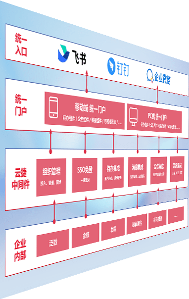 对协作平台提供支持服务,,支持企业应用与协作平台对接,,,包含组织同步、、、消息集成、、待办集成等。。支持目前主流的协作平台:钉钉、、、企微和飞书。。。。